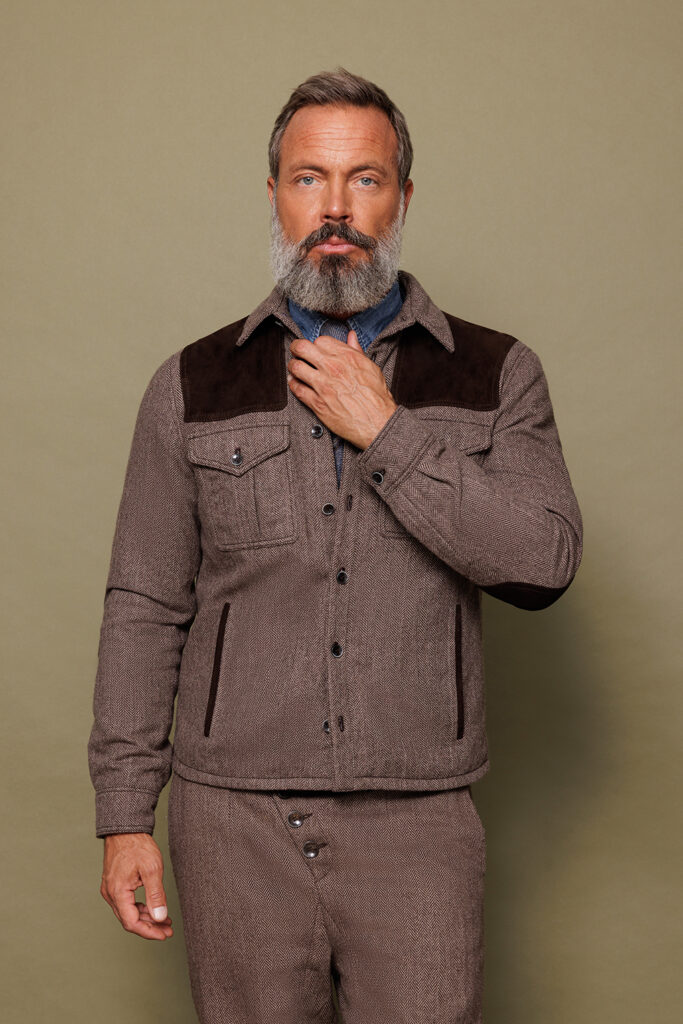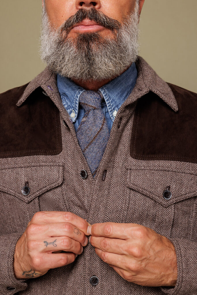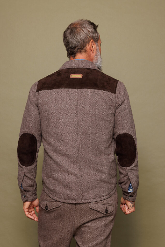 LUMBERJACK - OVERSHIRT - HERRINGBONE WOOL TWEED/SUEDE - COFFEE