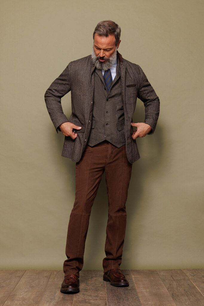 STROLLER TWEED - TROUSER - HERRINGBONE WOOL TWEED - COFFEE
