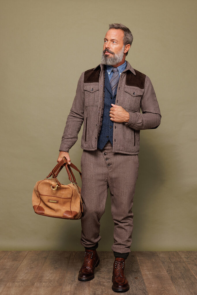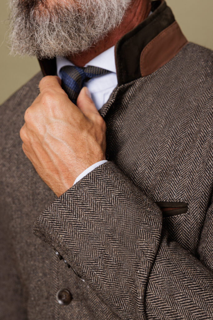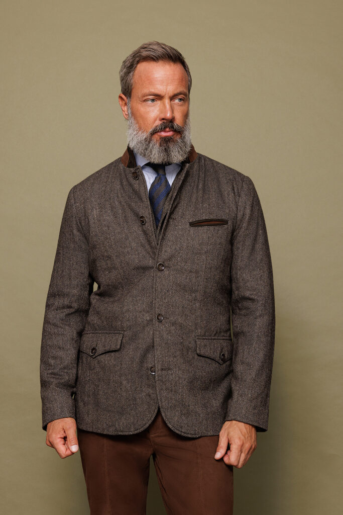 LORD TWEED - SHACKETT - HERRINGBONE WOOL TWEED/SUEDE - BATTLE GREEN