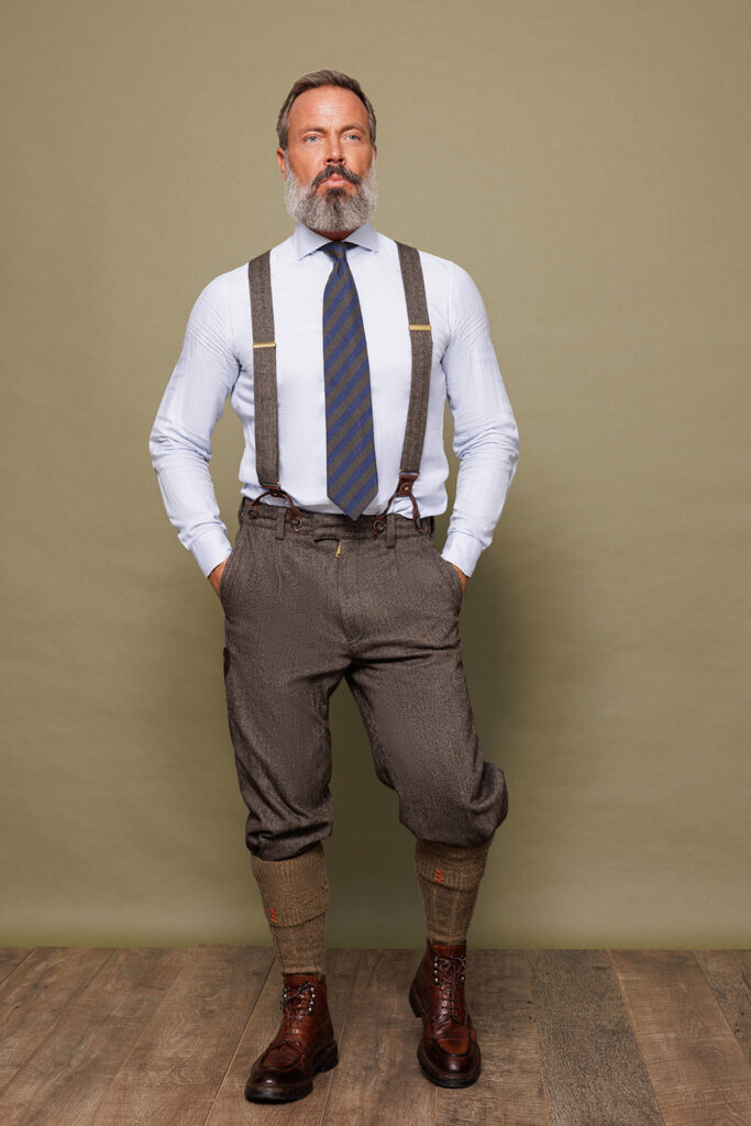 SUSPENDERS - SUSPENDERS - WOOL HERRINGBONE TWEED - BATTLE GREEN