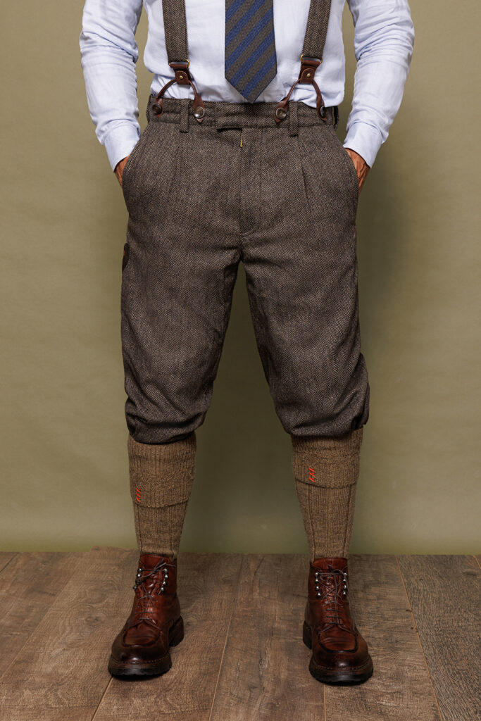 EARL TWEED - BREECHS - WOOL HERRINGBONE TWEED - BATTLE GREEN