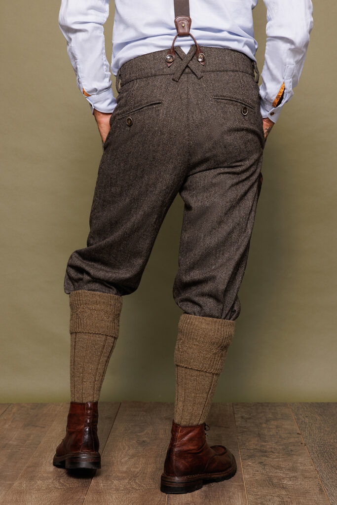EARL TWEED - TWEED BREECHS - HERRINGBONE WOOL TWEED - BATTLE GREEN