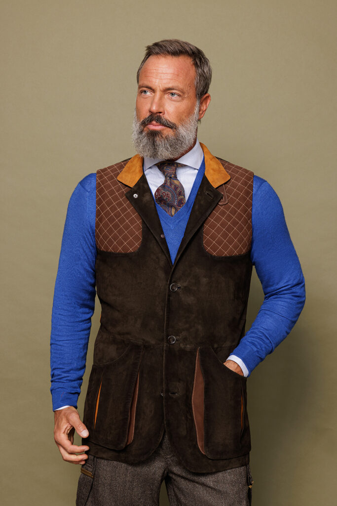 GUNNER - SHOOTING VEST - 0,6 MM GOAT SUEDE - MILITARY GREEN WAXED FINISH