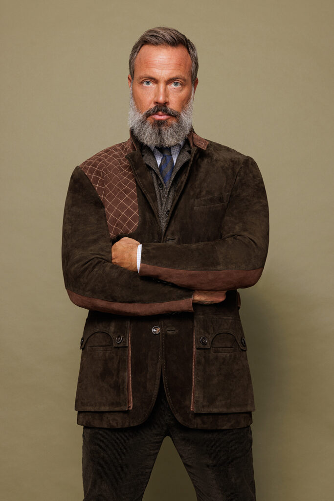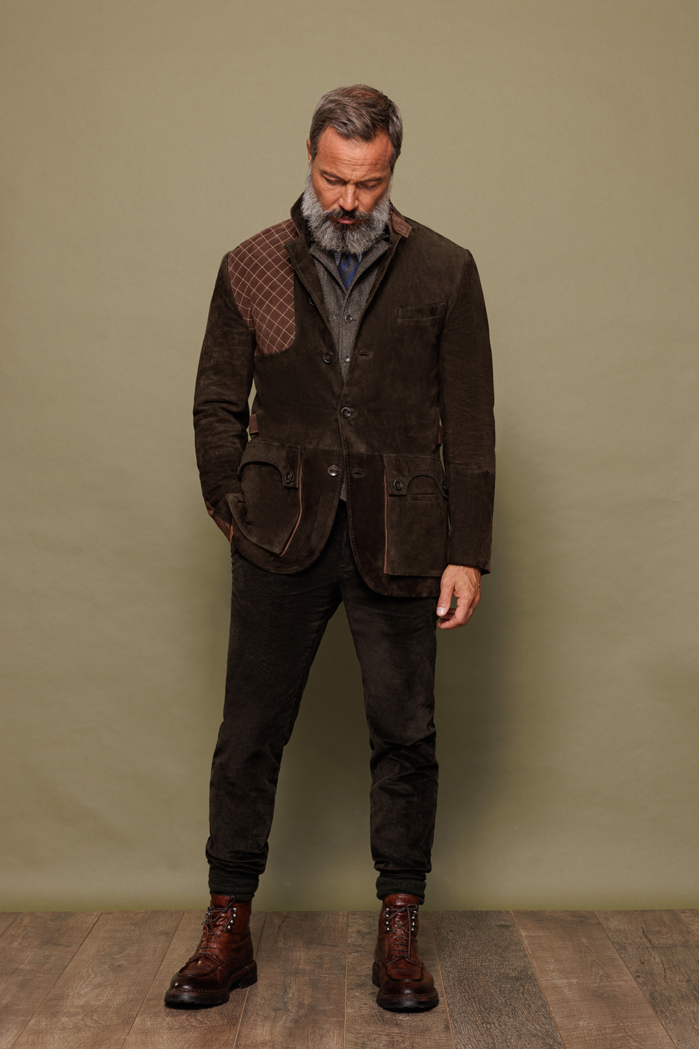 NORFOLK -SHOOTING BLAZER - 0,6 MM GOAT SUEDE - MILITARY GREEN SLIGHTLY WAXED