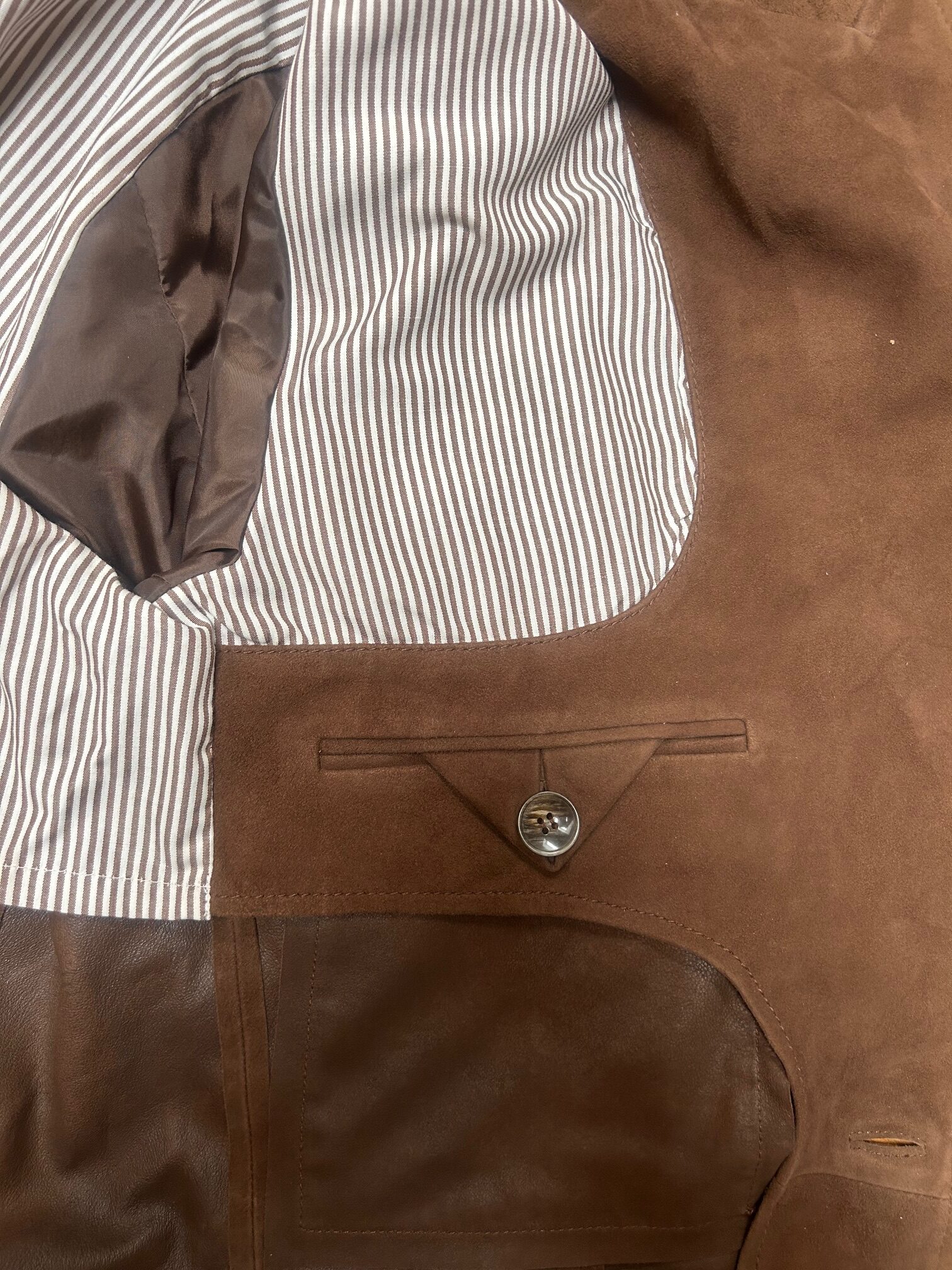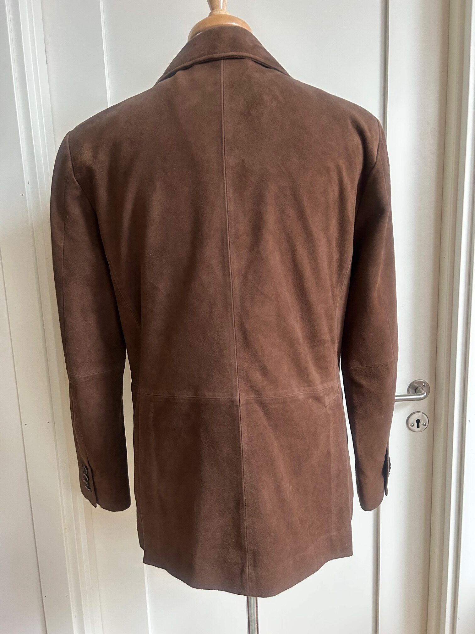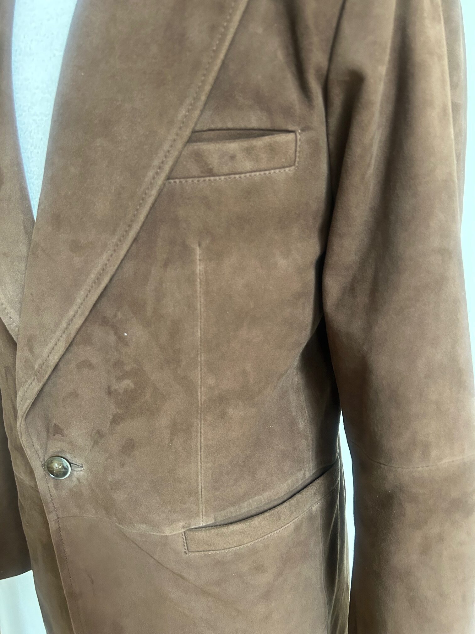 Classic 1-butoned goat suede single breasted blazer wit a wide peak lapel. Half-Lined interior