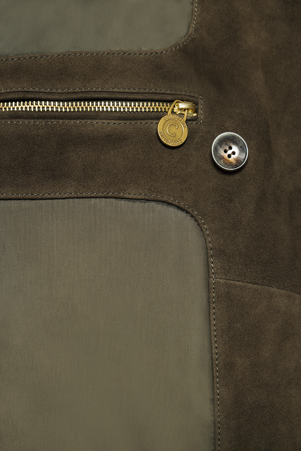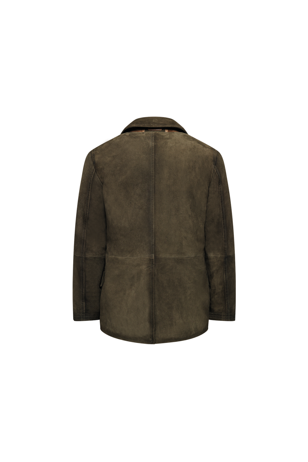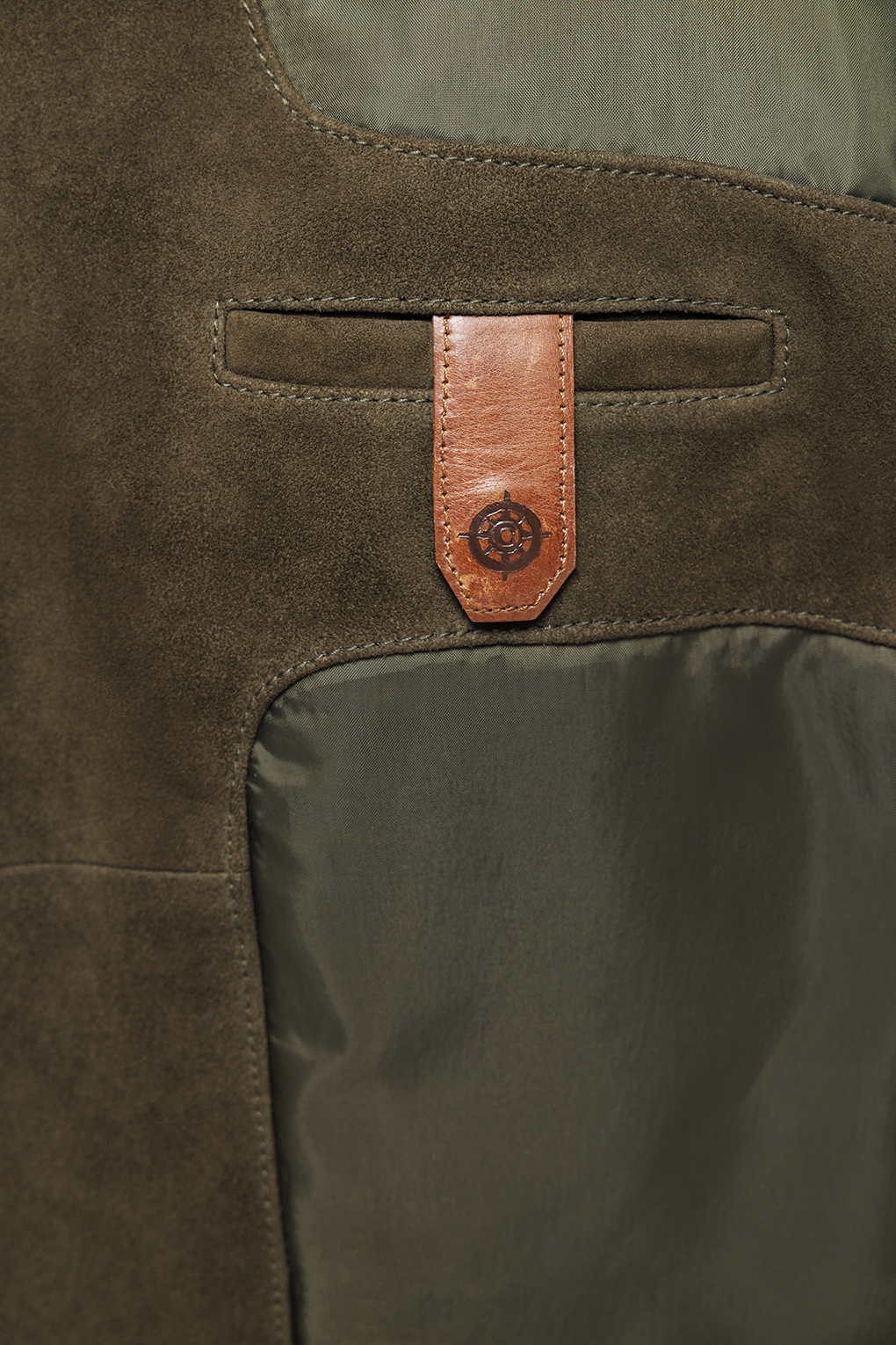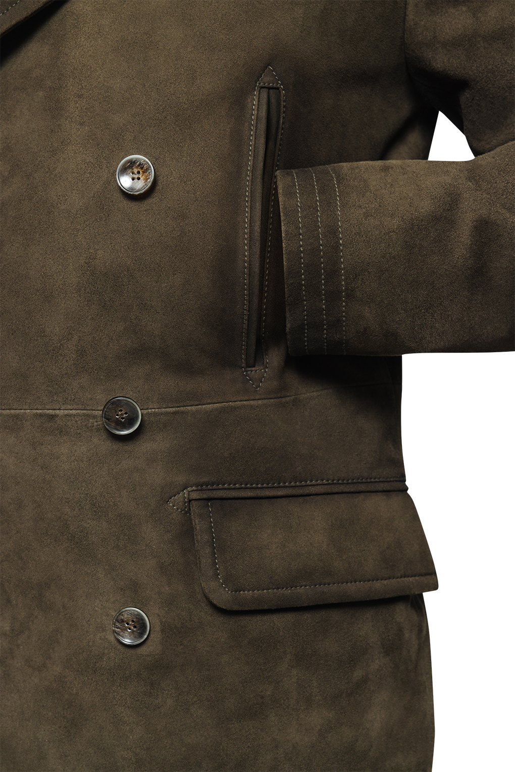 Pea Coat in semi-heavy goat suede with waxed details and hand-warmer pockets