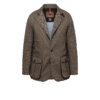Biker/Racer jacket in premium goat suede with slightly waxed finish on details. The garment has been inspired by the 1950s iconic racer jackets. The style features a two-way zip in brass colour, 2 large slightly rounded chest patch pockets closed with zippers and 2 hand-slide pockets at the side. The jacket has an adjustable side strap at the hem fastened with buttons. The jacket has barrel cuffs in sleeve endings. The jacket is full-lined with a blue/white cotton stripe. The jacket has 2 internal pockets.